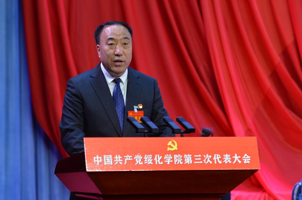 刘峰代表中国共产党绥化学院第二届委员会向大会作了题为《高举旗帜凝聚力量勇担使命奋力谱写区域高质量应用型大学建设新篇章》的报告。刘峰指出,中国共产党绥化学院第三次代表大会是在党带领人民开启全面建设社会主义现代化国家新征程、龙江实现全面振兴全方位振兴新阶段、我校迈向应用型大学高质量发展新起点的关键时期召开的一次十分重要的会议。大会的主题是:高举习近平新时代中国特色社会主义思想伟大旗帜,坚定社会主义办学方向,落实立德树人根本任务,实现高等教育内涵发展,团结带领全校各级党组织、全体共产党员和广大师生员工,统一思想,凝聚力量,勇担使命,奋力谱写区域高质量应用型大学建设新篇章。