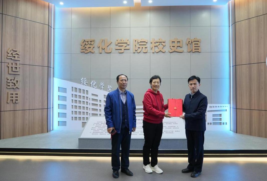 捐赠环节中,王辉夫妇亲手将珍藏多年的绥化师范专科学校校名徽章、学生时代使用的钱票和粮票交到工作人员手中。“这些物品承载着我们对母校的青春记忆,希望能为校史馆补充史料,让更多学弟学妹了解母校历史。”王辉表示。