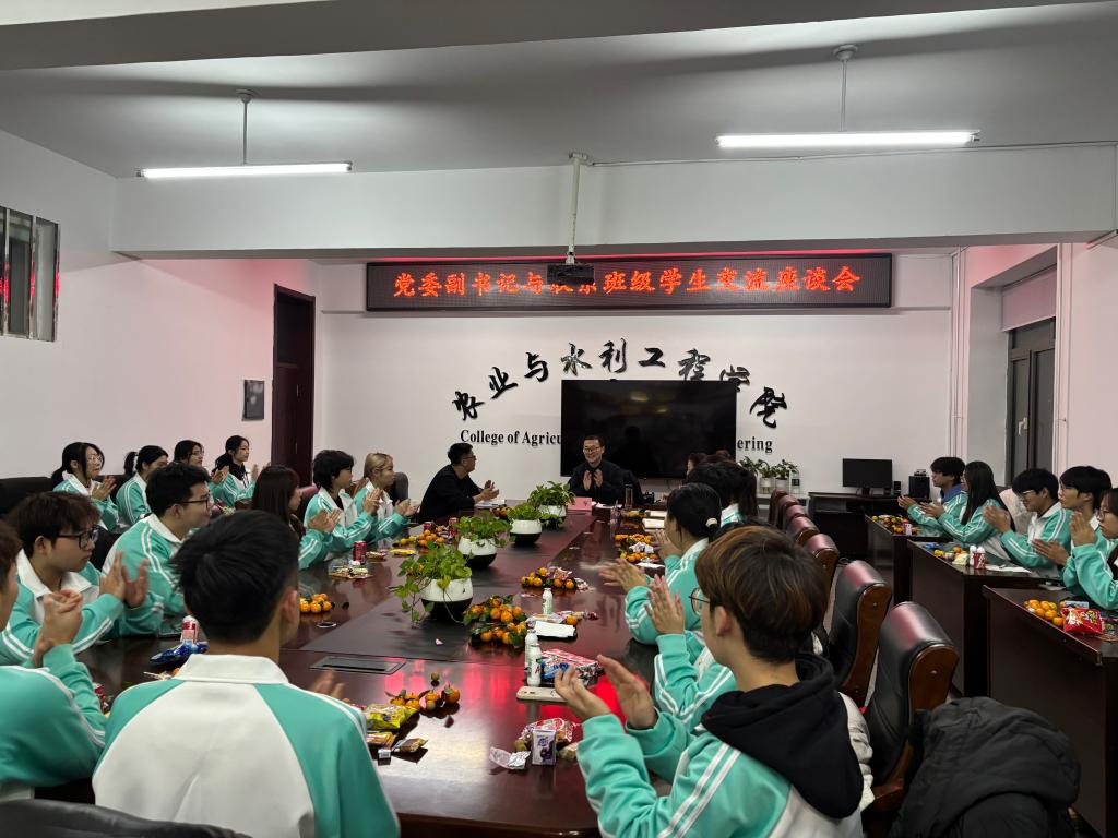 12月25日下午,党委副书记姜军在知新楼三楼会议室与所联系的农业与水利工程学院2025级农学一班学生开展交流座谈会。农业与水利工程学院党总支书记吕霞主持会议,院长周利军、辅导员赵丹参会。