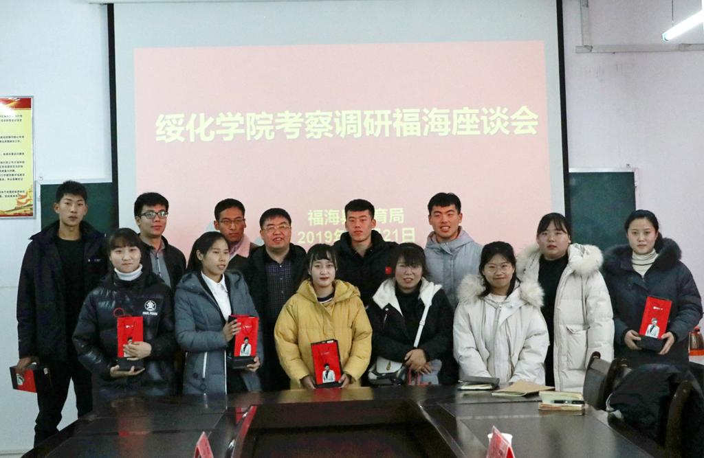 在“不忘初心、牢记使命”第二批主题教育开展之际,为进一步贯彻落实好第七次全国对口援疆会议精神,加大教育援疆力度,拓展教育援疆新路径,11月20日至21日,校长张凤武一行在阿勒泰行署副专员、省援疆前指副总指挥关威、阿勒泰地区教育局副局长崔志伟等同志的陪同下,先后来到受援地富蕴县、福海县调研教育援疆工作并慰问就业校友和支教大学生。