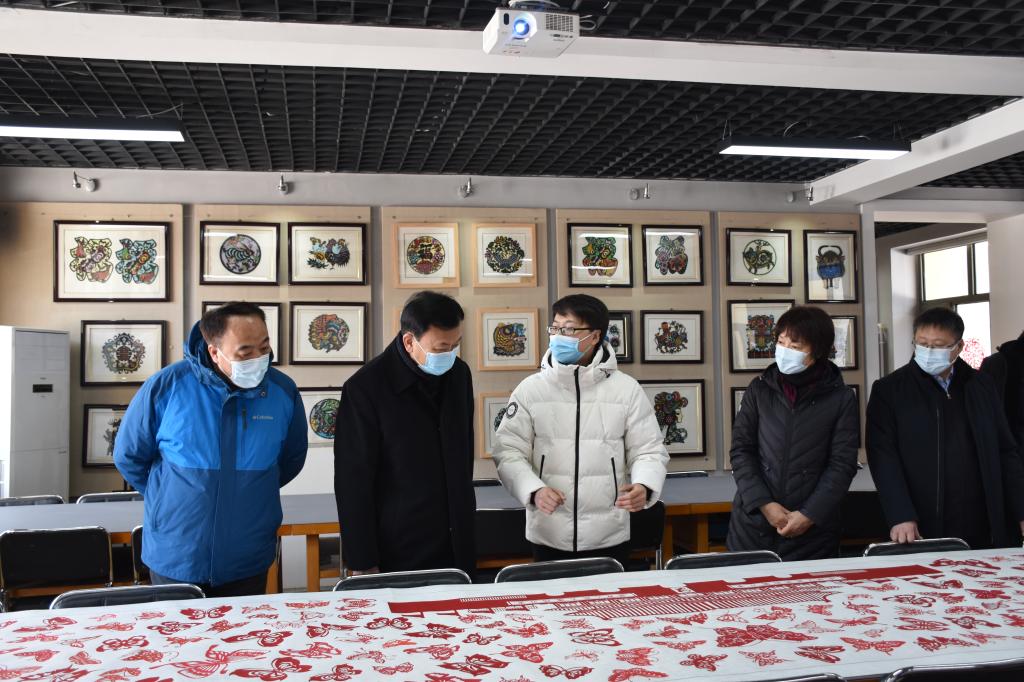 在剪纸艺术设计与创作工作室,张宝伟与刘卓亲切交流,具体了解剪纸艺术的传承与发展。在了解工作室为学校培养高素质的剪纸大学生的同时,还在潜心研究开发创作具有寒地黑土特点的剪纸作品,张宝伟连连称赞。