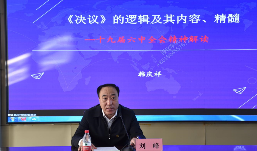 中央党校一级教授、中央党校专家工作室领衔专家韩庆祥作题为“《决议》的逻辑及其内容、精髓——十九届六中全会精神解读”的首场讲座,党委书记刘峰主持。