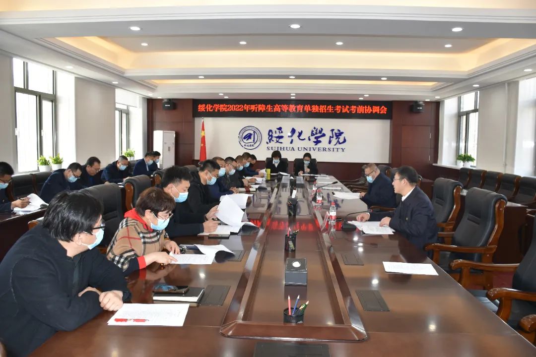 为保障2022年听障生高等教育单独招生考试安全平稳有序进行,按照新冠肺炎疫情防控常态化下绥化学院2022年听障生高等教育考试工作方案要求,4月13日,绥化学院召开了听障生高等教育单独招生考试考前协调会。会议由副校长田国忠主持,副校长卢百胜出席会议,相关部门负责人和二级学院院长参加会议。