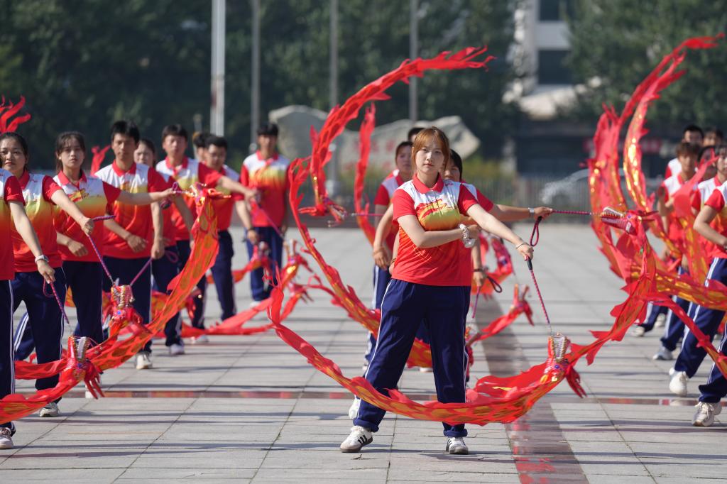 闭幕式上,大型广场龙舞展演现场热闹非凡。特殊教育学院的108名听障大学生组成多样队形,精神饱满地舞动龙舞道具,灵活变换队形,五彩斑斓的舞龙在广场上蜿蜒穿梭,引得众多师生驻足观看,现场掌声与欢呼声此起彼伏,气氛热烈。