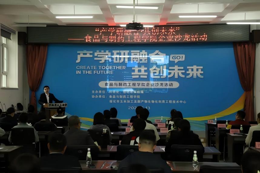 5月13日上午,食品与制药工程学院在大学生创新创业基地301会议室举办“产学研融合・共创未来”企业沙龙活动。此次活动由绥化市科技局与我校科研处联合主办,汇聚政府、高校、食品制药领域头部企业及科研机构的百余名代表,60余家单位通过线上线下相结合的方式积极参与,共同为绥化玉米加工、食品及制药产业的高质量发展谋篇布局,探索产学研协同创新的新路径。