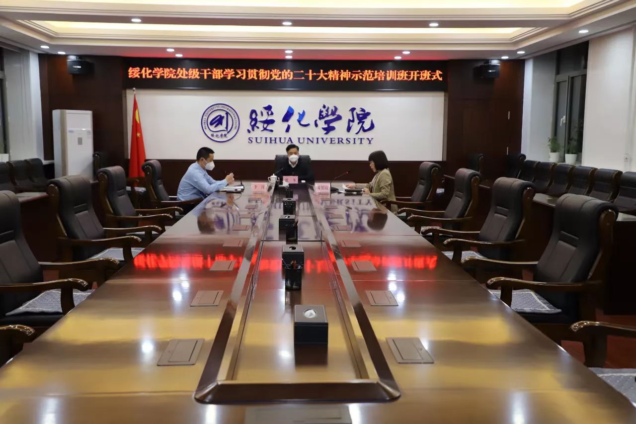 12月26日晚,绥化学院处级干部学习贯彻党的二十大精神示范培训班开班式在机关楼310会议室举行。全校处级干部通过腾讯会议平台线上参加开班式。党委副书记张冬出席开班式并讲话。党委委员、组织部部长夏艳霞主持开班式。