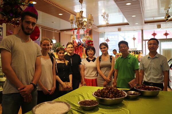 在端午节即将到来之际,文学与传媒学院副院长由婧涵、留学生班主任吴春生带领6名来自俄罗斯的留学生前往鑫威蛋糕烘焙坊学习包粽子,感受中国“端午”民俗和浓浓的中国味道。