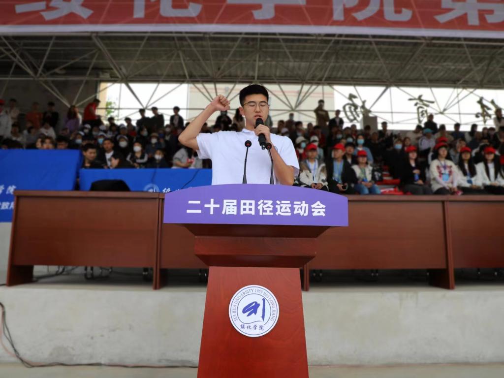 学校体育运动委员会主任马春华致开幕词。她代表学校对本届运动会的召开表示热烈祝贺,对离退休老领导、老同志的光临表示热烈欢迎,向精心筹备本届运动会的工作人员表示诚挚的感谢以及向积极参加今天活动的全校师生员工致以美好的祝愿。马春华指出,我校第二十届田径运动会的胜利召开,正逢学校加快推进区域高质量应用型大学建设、喜迎校庆70周年之际,这是学校展示体育教学成果、体育竞技成绩和群众性体育水平的盛会,更是一次对师生勇于拼搏、追求卓越、团结奋斗意志品质的大检阅。她希望,全体运动员在本次运动会上赛出水平,赛出风格;全体裁判员遵守竞赛规则,公平裁判;全体工作人员严格管理,热情服务;各单位、各部门加强组织领导,遵守大会纪律,充分展示我校良好的校风和积极向上的精神风貌,把拼搏自强、团结协作的体育精神转化为推进学校各项事业持续发展的不竭动力,以更加饱满的热情和优异的成绩向建校70周年献礼!