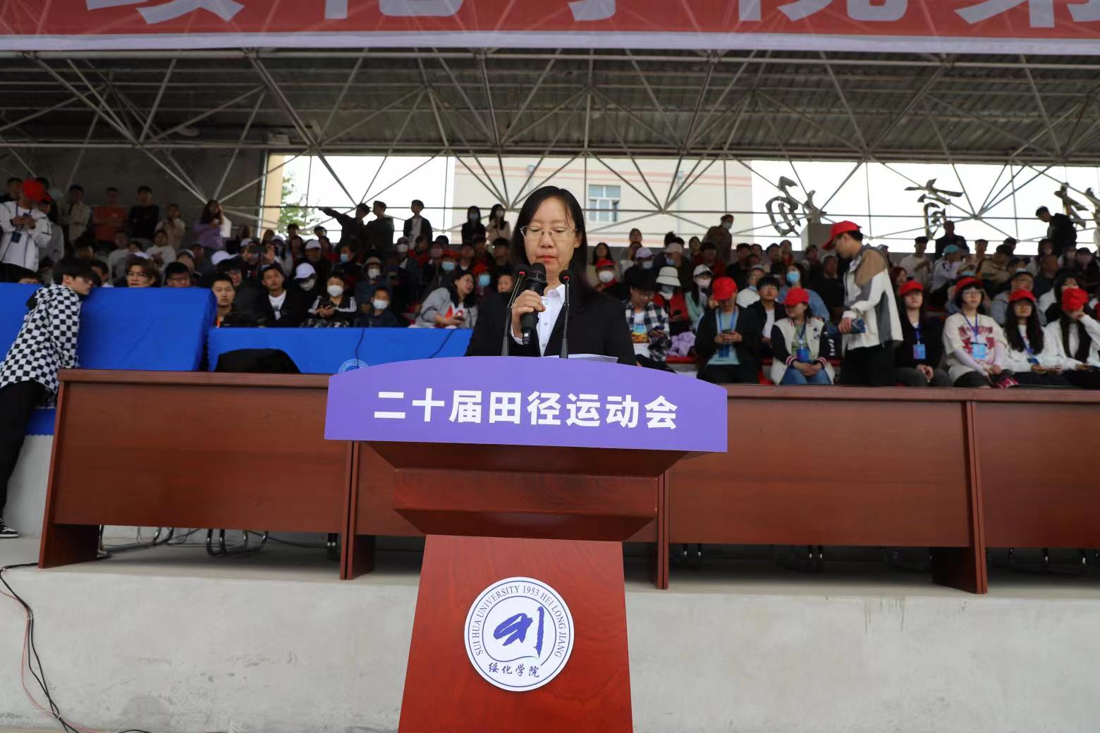 李翠霞宣布绥化学院第二十届田径运动会正式开幕。