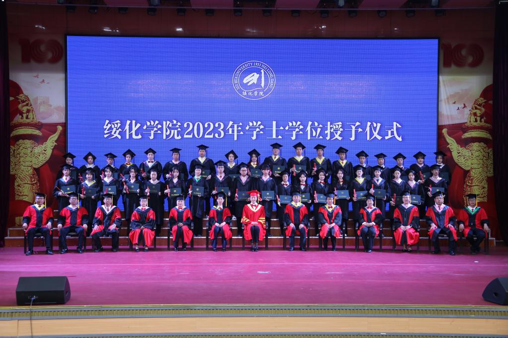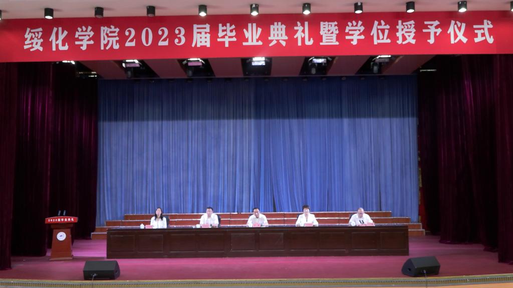 庄严的国歌响起,毕业典礼开始。马春华宣读《绥化学院2023届毕业生暨授予学士学位名单》;田国忠宣读《关于表彰绥化学院2023届优秀毕业生和优秀创业毕业生的决定》。