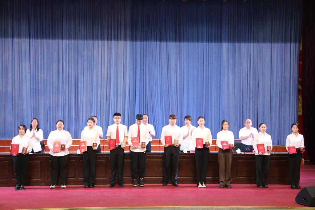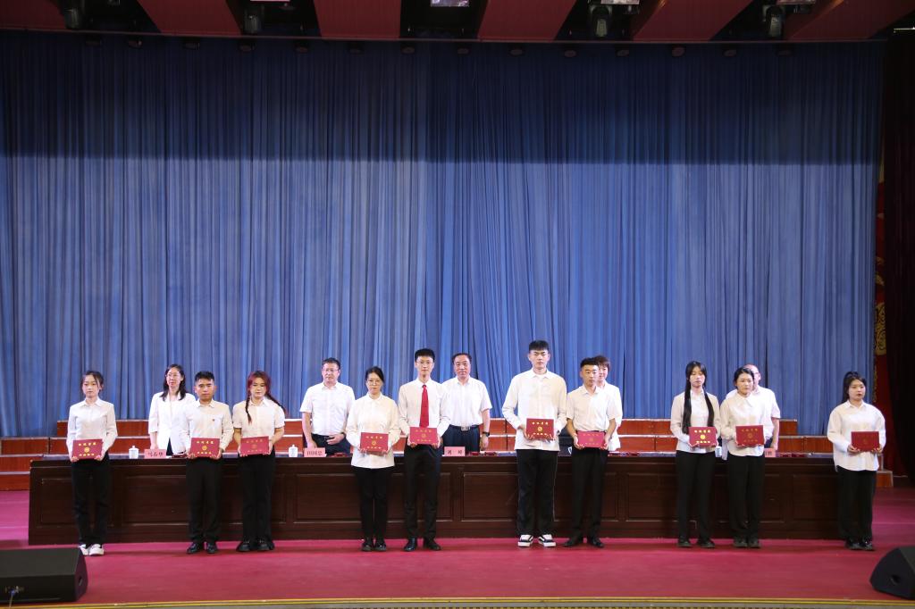 学校领导为毕业生代表和优秀毕业生代表颁发毕业证书和荣誉证书。