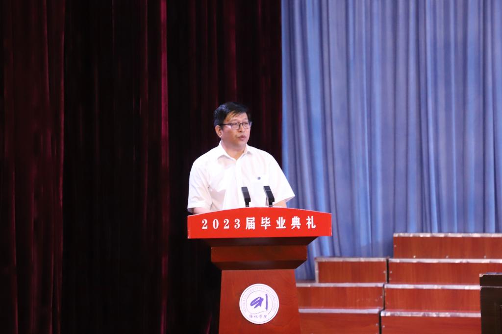 副院长田国忠宣读《关于表彰绥化学院2023届优秀毕业生和优秀创业毕业生的决定》