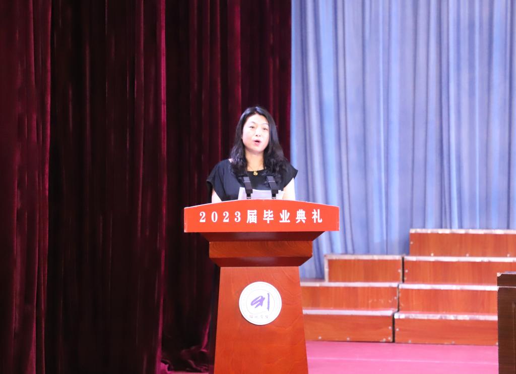 外国语学院英语专业学生张洪宇母亲王晓慧代表2023届毕业生家长向全体毕业生顺利完成学业、走上人生征途表示热烈祝贺,并向绥化学院的各位领导、全体教师,对学生的辛勤培育表示衷心的感谢。