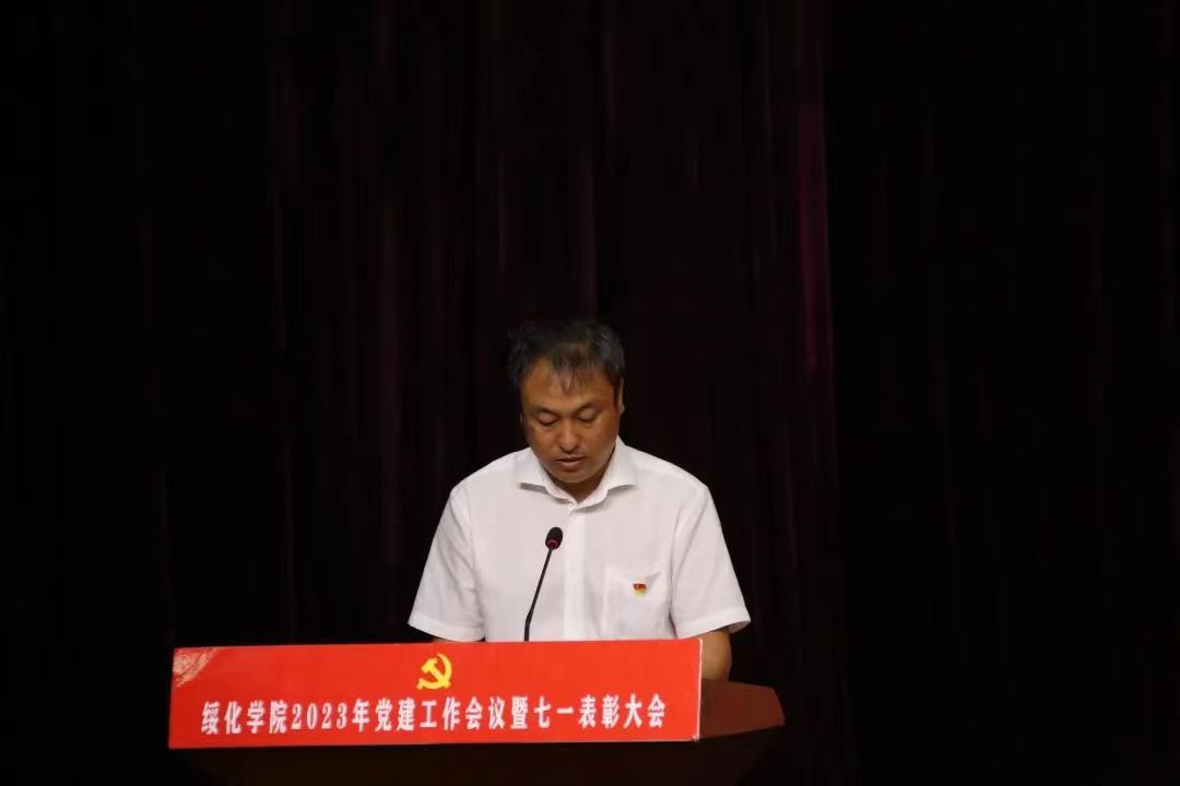 刘峰在讲话中从突出党的政治引领,基层党建工作再上新台阶;选树新时代标兵典范,创先争优活动取得新成果;落实立德树人根本任务,思想政治工作得到新推进;围绕中心服务大局,学校各项事业实现新突破;树立鲜明政治导向,干部人才队伍展现新风貌;坚持师生生命至上,安全稳定工作构建新格局;坚定不移全面从严治党,党风廉政建设取得新进展;坚持党的群众路线,统战群团工作开创新局面等八方面回顾了过去两年的党建工作。