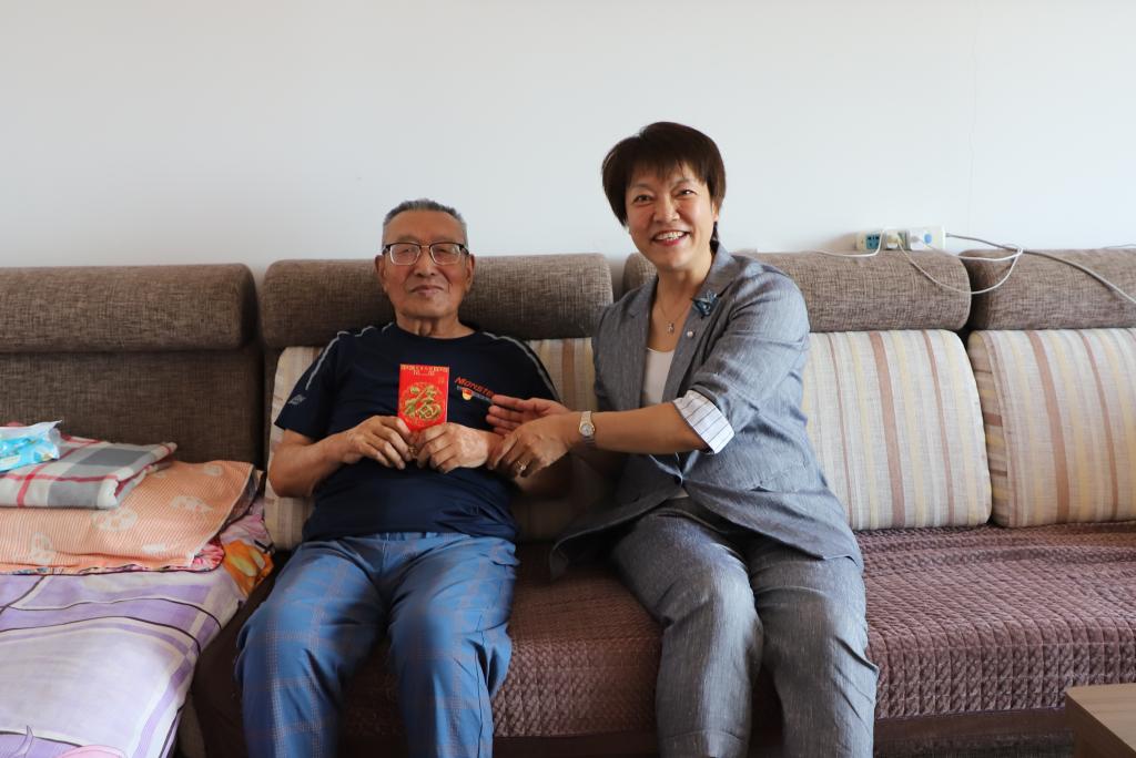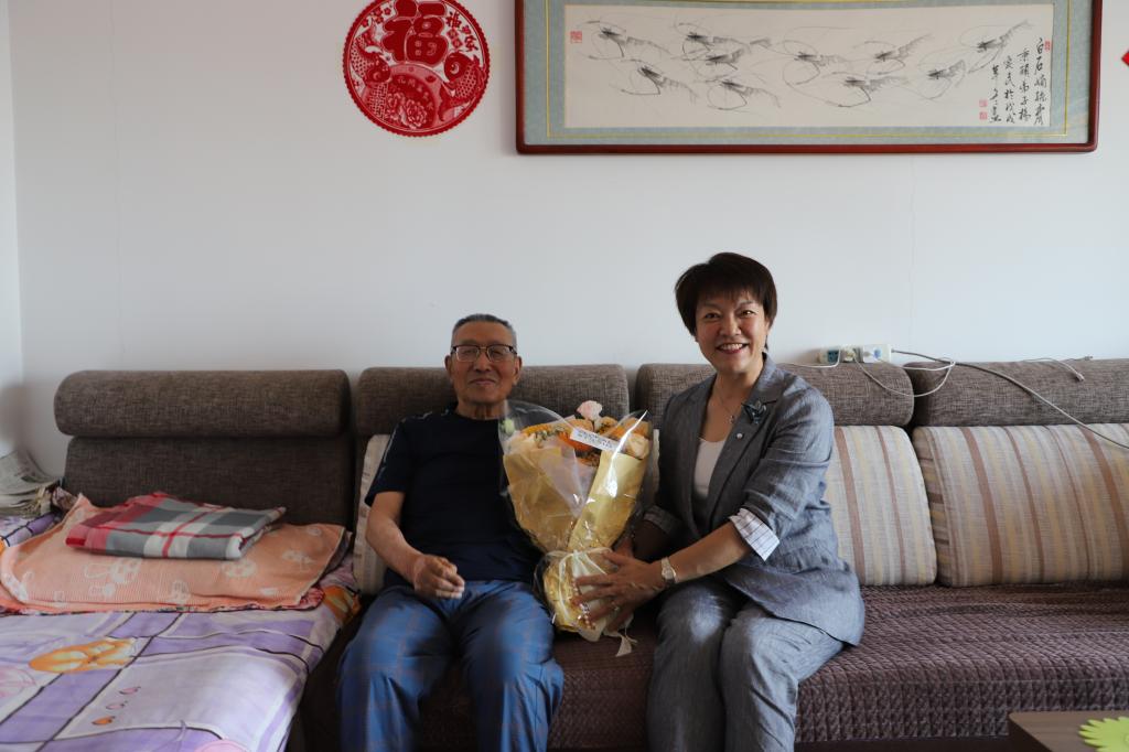 在91岁的离休老党员孙贵卿家中,李翠霞详细了解孙老师的生活和身体状况,对孙老师长期以来奉献党的事业、关心学校的建设发展表示敬意,嘱咐孙老师注意身体,适当运动,并表示学校一定尽力为老同志做好服务,请孙老师多提宝贵意见,享受幸福的晚年时光。李翠霞祝福老人家健康长寿、阖家幸福。