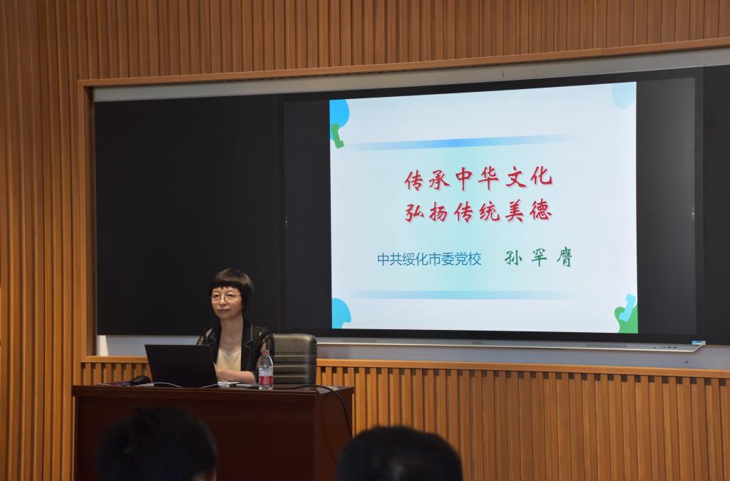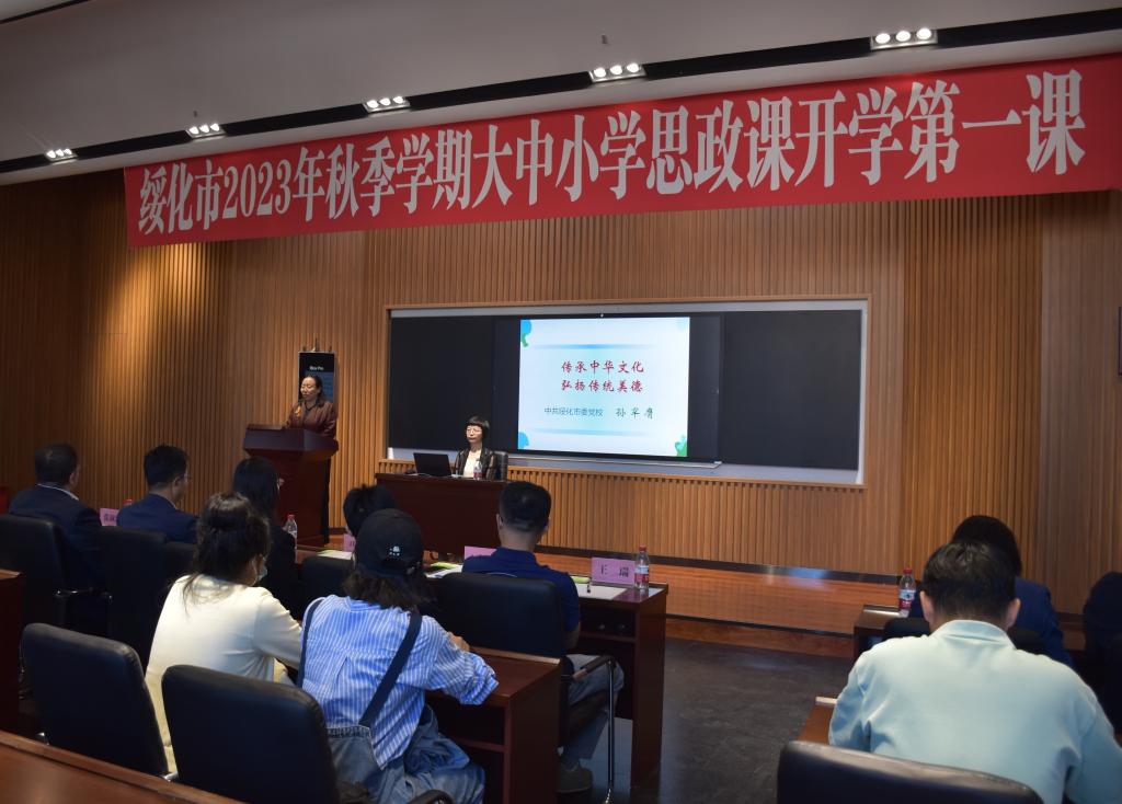 绥化市委党校哲学教研室教授孙罕膺以“传承中华文化弘扬传统美德”为题为绥化市大中小学生讲授思政课开学第一课。孙罕膺围绕“中华传统美德的哲学观基础”“中华优秀传统文化的道德规范”等方面内容,并把相关历史典故以及热搜话题融入授课内容,为全市大中小学师生上了一堂生动的思政课。孙罕膺希望同学们认真汲取中华文化精神力量,争做新时代德智体美劳全面发展的社会主义建设者和接班人!