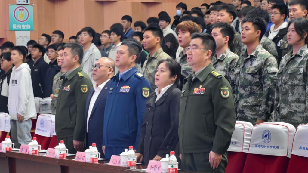 李爱平代表北林区人武部讲话,他站位一名大学毕业生,希望广大学生学好本领、投身国防;站位一名24年老兵,倡议广大学生关注国防、守护国家安全;站位一名武装部干部,将努力为广大学生投笔从戎、建设国防做好全方位保障服务;站位一名成立国防兴趣协会的倡导者,将积极为广大学生了解国防、走进国防创造条件,提升国防进校园工作的实效性和牵引力。