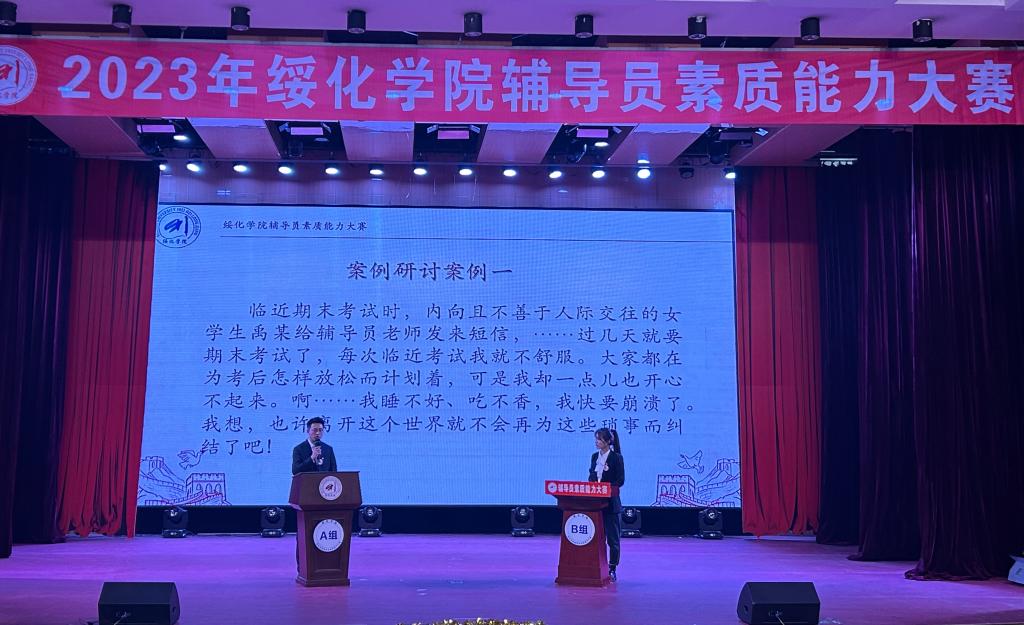 12月27日晚,由学生工作部主办,经济管理学院承办的2023年辅导员素质能力大赛决赛在大学生活动中心举行。党委委员、副院长卢百胜及各二级学院党总支书记、副书记、辅导员现场观看比赛。