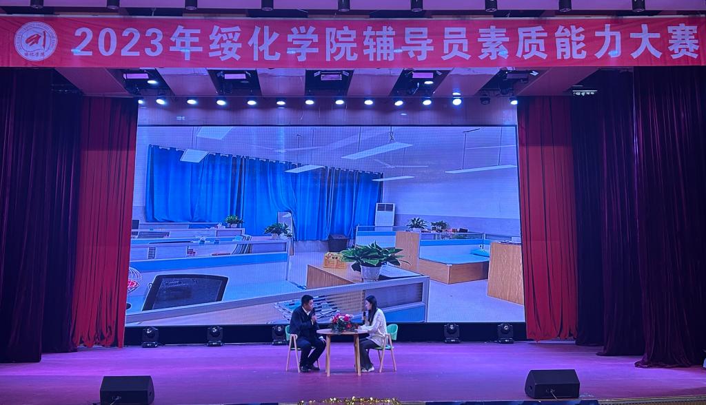 决赛的第二个环节是谈心谈话环节,通过助演嘉宾与选手两人组队,随机抽取一个案例,围绕事例进行角色扮演。在这一环节中,选手直面助演嘉宾,针对他们提出的生活及学习方面的疑惑,积极应对,体现了辅导员对待青年朋友的亲和力和出色的沟通能力。