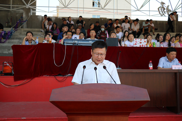 副校长孙庆平致闭幕词。孙庆平代表学校领导和大会组委会向公正严谨的裁判员、辛勤劳动的工作人员表示衷心的感谢!向取得优异成绩的运动员表示热烈的祝贺!向开赛以来为运动员加油助威的老师们、同学们致以亲切的问候!他指出,本届运动会是一次成果展示的盛会,更是一次催人奋进的盛会。比赛期间,运动员敢于争胜、奋力拼搏,裁判员恪尽职守、认真负责,工作人员热情服务、兢兢业业,全体师生积极参与、文明观赛,充分弘扬了“更快、更高、更强”的体育精神,集中展现了我校师生良好的精神风貌。孙庆平希望,全校师生员工以本届运动会成功举办为契机,继续把体育运动当作一种良好的生活习惯,积极投身到体育锻炼中,继续发扬运动场上顽强拼搏、争先创优的精神,以昂扬的斗志、饱满的精神、扎实的工作贯彻好党的十九大精神,顺利通过审核评估,以优异的成绩向建校65周年献礼!