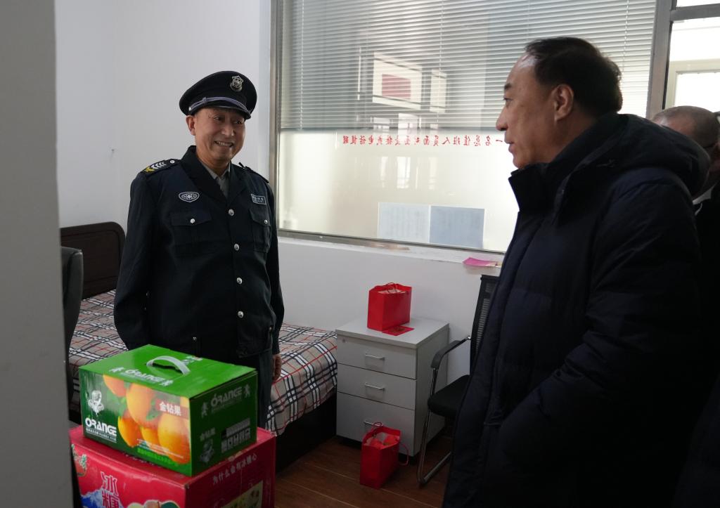 玉兔欢歌辞旧岁,金龙腾跃庆新春。2月9日上午,正值农历除夕,党委书记刘峰亲切慰问春节期间依然坚守在后勤保障、校园安全等工作岗位上的值班人员,代表学校党委和行政向他们致以诚挚的问候和新春的祝福,并送上节日慰问品和慰问金。