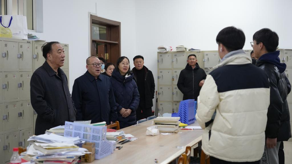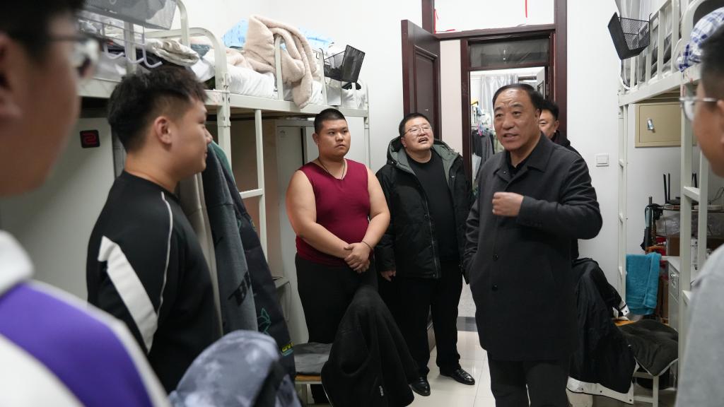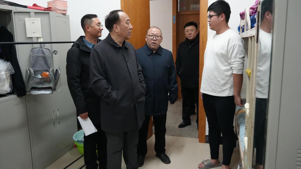 “老家都是哪里的?”“什么时候返校的?”“生活上有没有遇到什么困难?”“寝室冷不冷?”,刘峰来到寝室与各年级学生亲切交流,关切地询问同学们的假期生活、学习情况及新学期规划,在“拉家常”“问冷暖”中耐心倾听同学们的心声和诉求。