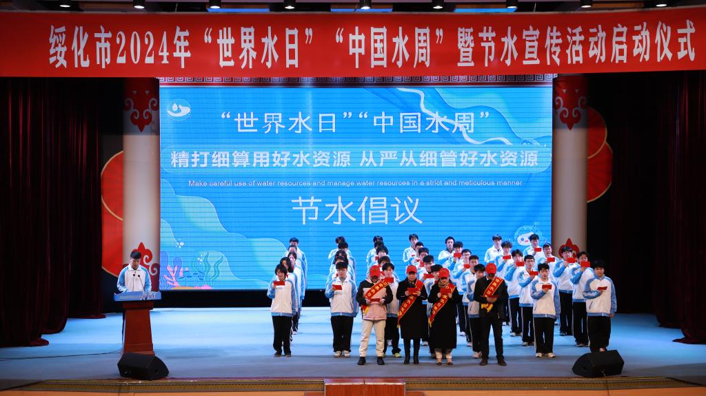 2024年3月22日是第三十二届“世界水日”,3月22日—28日是第三十七届“中国水周”。为深入贯彻落实习近平生态文明思想,进一步宣传节水理念,营造全社会爱水、惜水、护水的良好氛围,3月22日,农业与水利工程学院联合黑龙江省水文水资源中心绥化分中心、绥化市水务局开展“世界水日”“中国水周”宣传活动,宣传启动仪式在我校大学生活动中心举行。绥化市政府副秘书长赵铁雨,市水务局局长于志龙、副局长李延超,共青团市委书记白璐,黑龙江省水文水资源中心绥化分中心主任王俊孝、副主任张明,中国节水女英雄戴北春,我校党委委员、副院长卢百胜,农业与水利工程学院全体领导班子及学生代表出席启动仪式。