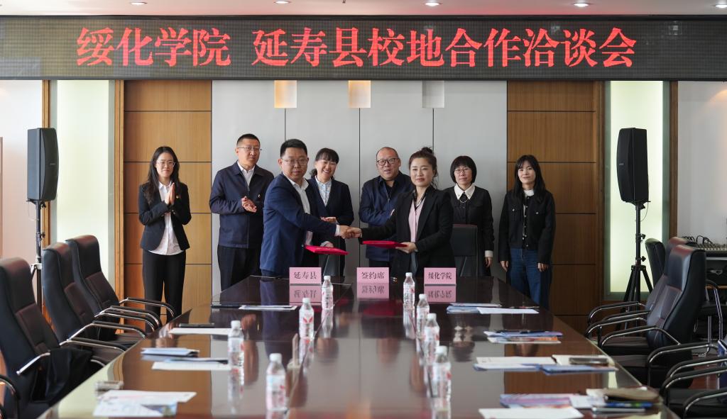 招生就业处处长刘冰南与延寿县委组织部副部长、老干部局局长石绍东代表校地双方签订合作协议书。