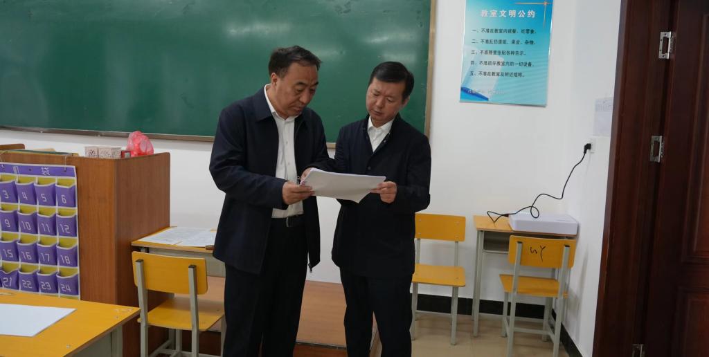 刘峰、李奇楠来到弘道楼考点,走进考场、考务办公室等场所,与考点负责人进行深入交流,现场察看考务组织管理、考风考纪等工作情况,针对存在的问题提出具体整改要求。