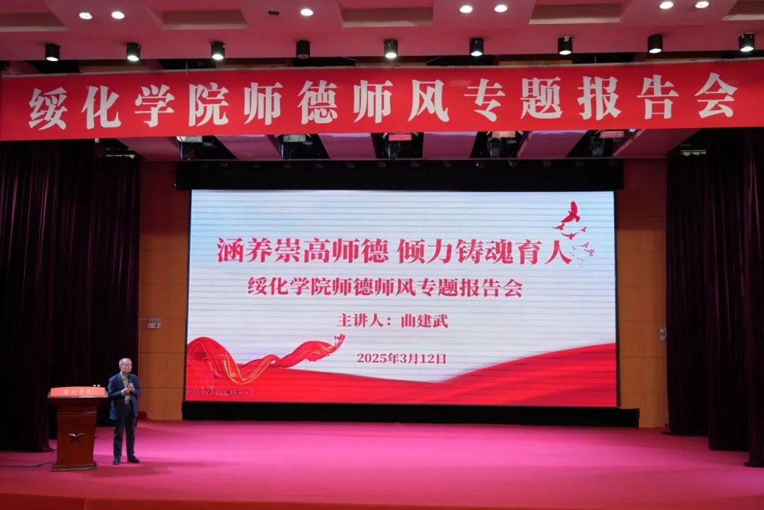 陶佰睿总结时指出,曲建武教授的专题报告,既有政治的高站位,也有理论的深探究,更有实践的大体悟。报告具有很高的思想性、理论性和指导性,对学校加强师德师风建设、对每位教师进一步提高自身师德修养具有重要指导意义。他希望全体教职工以本次报告会为契机,坚守为党育人、为国育才的初心使命,担当时代使命、严谨治学育人、坚持身正为范,弘扬学校优良传统,深刻理解教育家精神的丰富内涵和实践要求,争做新时代的“好老师”“大先生”,切实肩负起时代赋予人民教师的崇高使命,为强国建设、民族复兴,为学校区域高质量应用型大学建设作出新的更大贡献!