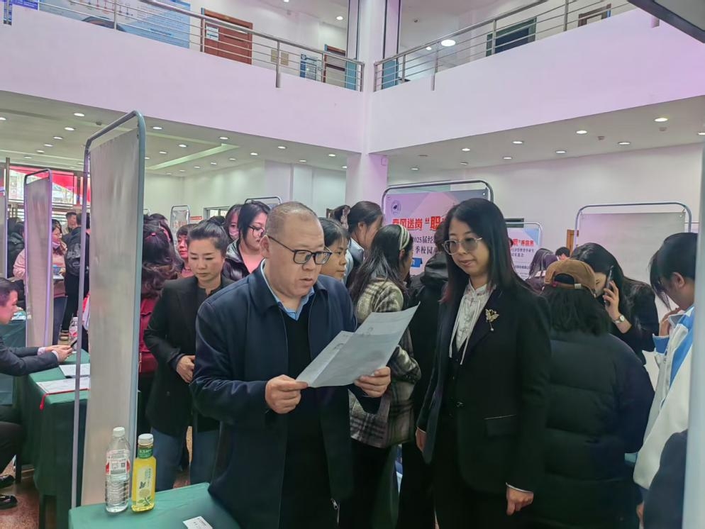 卢百胜深入招聘会现场,为求职学生提供指导帮助,鼓励毕业生积极就业,并与各企业进行了深入交流,进一步了解企业的发展状况、岗位需求以及人才培养计划,希望能够与各用人单位建立更为紧密的合作关系,进一步推动校企合作全方位、深层次、多领域发展。