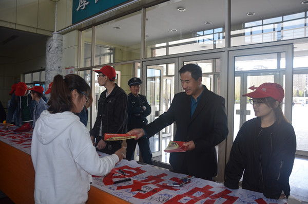 活动现场气氛热烈,保卫处处长李伟、消防科科长李大海耐心向过往师生讲解消防安全知识,解答大家日常生活中遇到的有关消防安全方面的疑问。师生们纷纷在“从我做起,为学校审核评估创造良好的消防安全环境”的横幅上签上了自己的名字,为构建平安校园作出承诺。活动现场还发放了“各类场所防火逃生手册”“全民消防安全宣传教育纲要”。