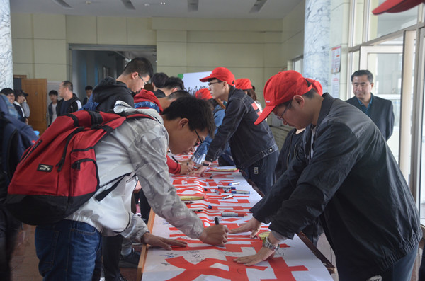 为进一步提高师生的消防安全意识,5月8日中午,保卫处在教学主楼一楼中厅举办了“从我做起,为学校审核评估创造良好的消防安全环境”万人签名活动。