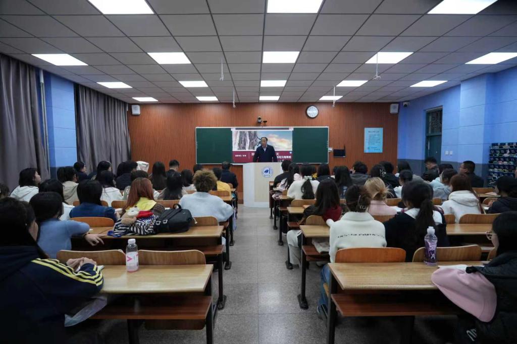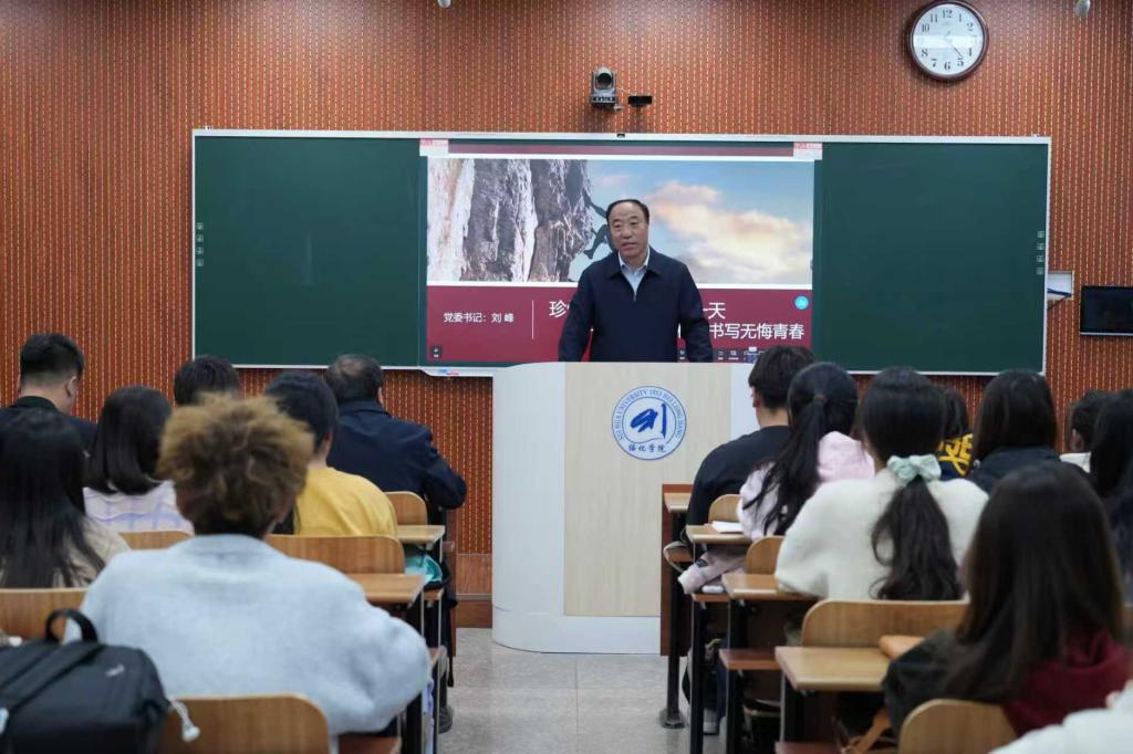 10月13日晚6点,党委书记刘峰以“珍惜大学生活中的每一天——在大学征程中书写无悔青春”为题,在汇文楼313教室为2024级汉语言文学一班讲授专题思政课。