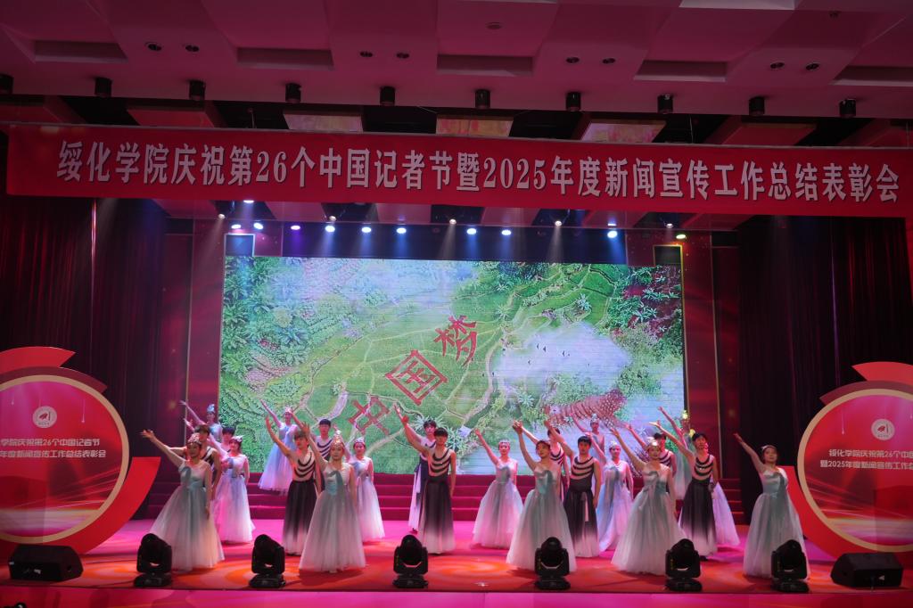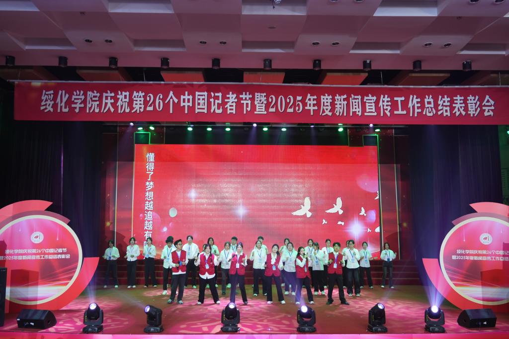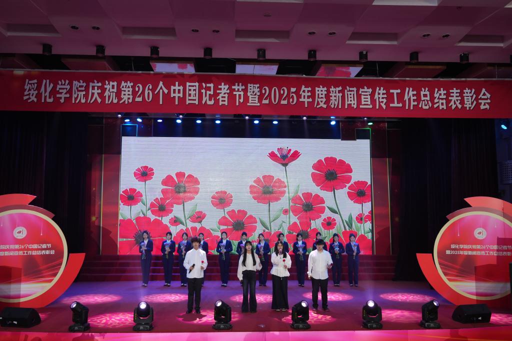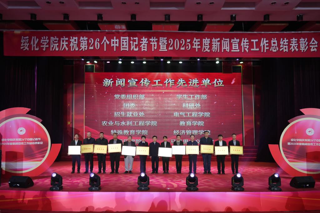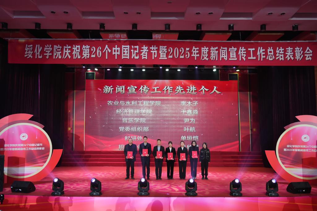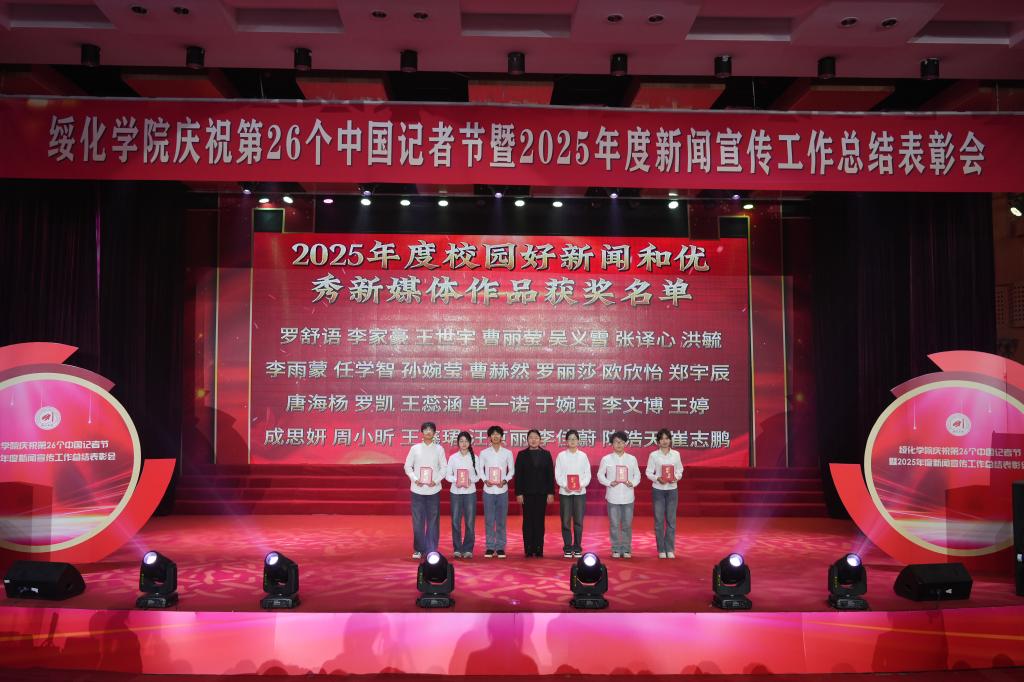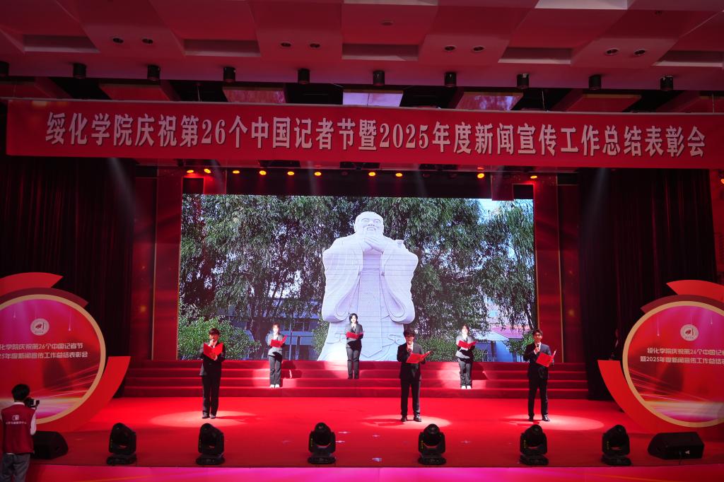 11月7日晚,学校在大学生活动中心举行庆祝第26个中国记者节暨2025年度新闻宣传工作总结表彰会。党委委员、副院长刘鹏程出席并为“新闻宣传工作先进单位”颁奖。