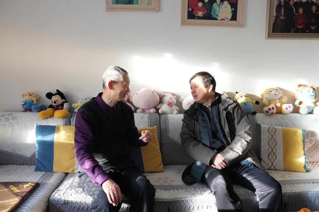 12月30日上午,刘峰来到离休干部孙贵卿家中与老人亲切交谈,详细询问其生活状况、身体情况及家庭生活实际需求,认真倾听他对学校发展的想法和建议,对孙贵卿为学校建设发展作出的贡献表示感谢。刘峰叮嘱孙贵卿要保重身体,保持乐观心态,有困难及时向学校反映,同时要求随行人员,要始终把老干部的冷暖放在心上,在生活上给予更多关心与照顾。