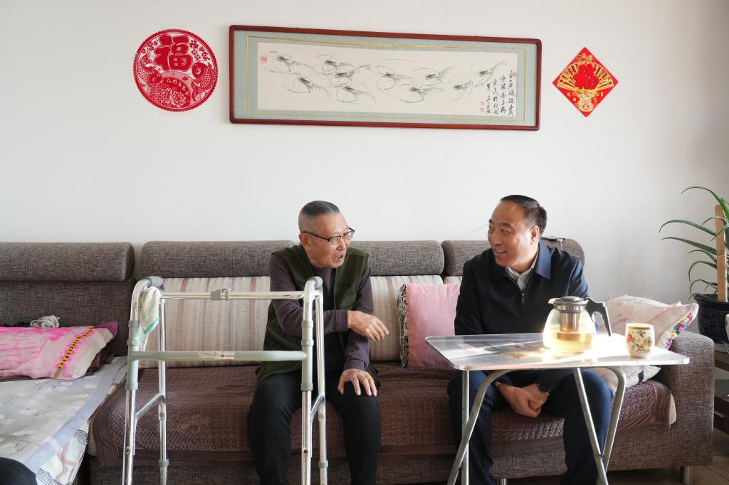 12月31日上午,李奇楠带领慰问组,前往看望慰问退休老领导侯德林。在侯德林家中,李奇楠与侯德林促膝长谈,关切询问其家庭情况、健康状况和生活需求,向他介绍学校近期发展成果,认真倾听他的诉求。他表示,老领导是学校发展的宝贵财富,学校始终铭记他们的付出,鼓励侯德林安心生活、保重身体,继续关注学校发展,多提宝贵意见,要求联络人员协助做好服务工作。