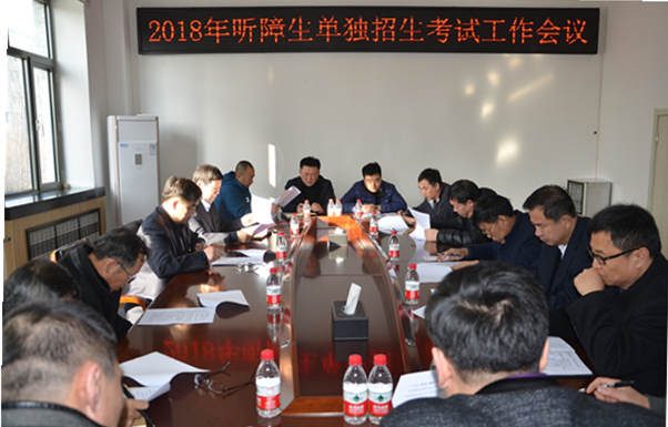 3月21日,2018年听障生单独招生考试工作会议在机关办公楼会议室召开。校长张凤武、副校长田军、孙庆平出席会议,招生考试工作领导小组成员参加会议。会议由张凤武同志主持。