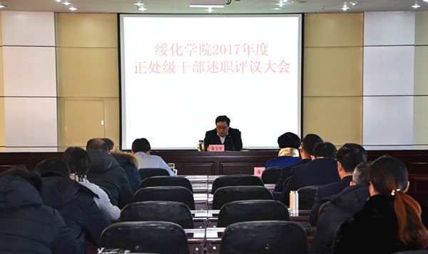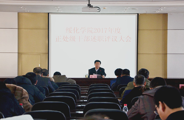 1月6日,我校2017年度处级干部述职评议大会在教学主楼五楼会议室行。学校领导董广芝、张凤武、张宝军、田军、李春雨、孙庆平、田国忠、王东、李淑慧出席会议。全校副科级以上干部参加会议。党委副书记张宝军、副校长田军分别主持述职大会。