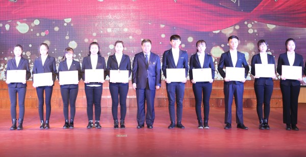 学校领导董广芝、张凤武、李春雨、孙庆平、李淑慧,党委委员、组织部部长唐玉蛟,党委委员、宣传统战部部长宋文军,学生工作部(处)长白景军,团委书记夏艳霞与同学们共同观礼并颁奖。(校报)