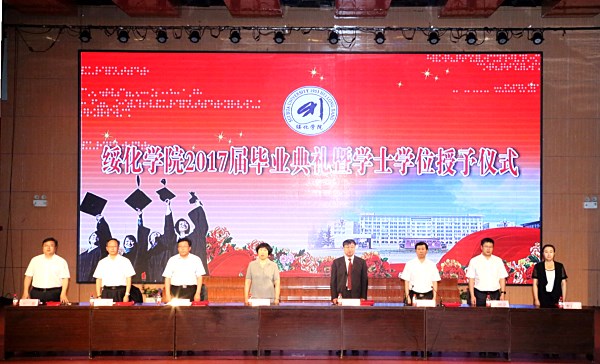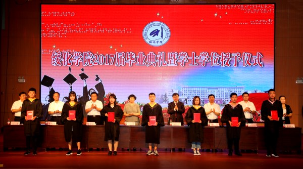 典礼在庄严的国歌声中拉开帷幕。副校长孙庆平、党委副书记张宝军、副校长王东分别宣读了2017届毕业生毕业资格、学位资格审查结果,《关于表彰绥化学院2017届优秀毕业生的决定》和《关于表彰2017届优秀创业毕业生的决定》。学校领导为优秀毕业生代表、优秀创业毕业生代表颁发毕业证书。