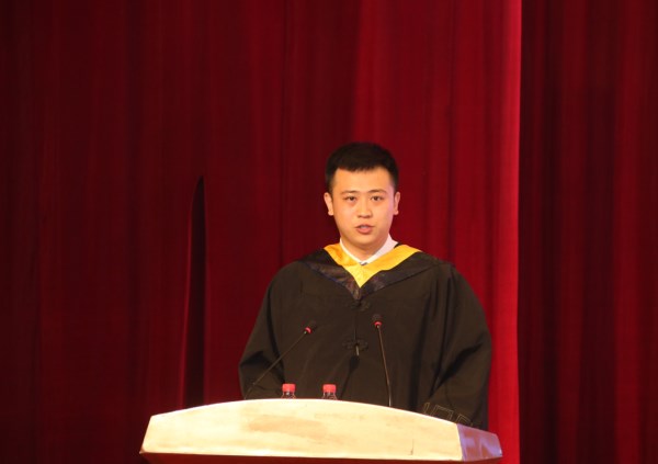 毕业生代表、电气工程学院2013级电气工程及其自动化专业武一满怀深情地发表毕业感言。四年的点点滴滴铭刻在每一位毕业生的心中。他代表全体毕业生真切地向老师们、帮助过他们的人们表示最诚挚谢意。他说,四年来,是母校包容了我们的懵懂无知,孕育了我们的睿智果断,为我们提供了展示自我的舞台。未来,我们一定会不忘初心、砥砺前行,为绥化学院的名片增光添彩!