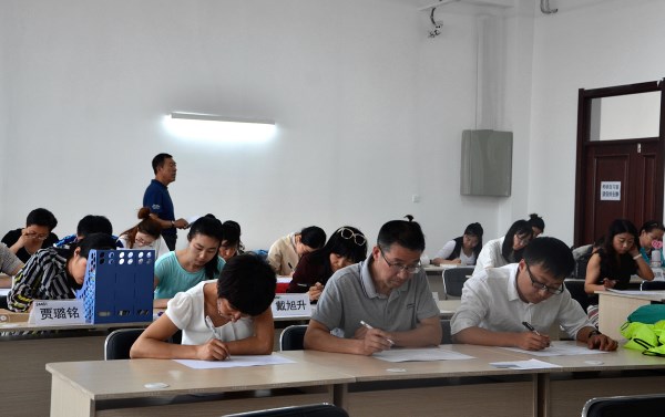 16时,考试正式开始,考场一片寂静,教职工们屏气凝神,认真作答,书写他们对审核评估工作的理解和认识。从试卷上密密麻麻的字迹可以看出大家对审核评估工作的重视。