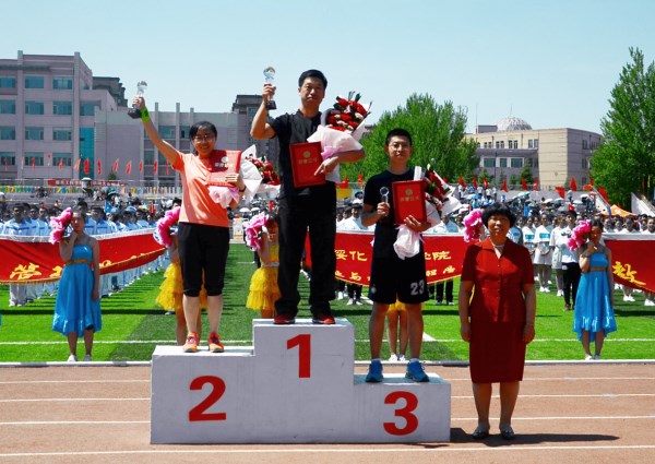 伴随着激昂的《运动员进行曲》,学校体育运动委员会副主任、运动会总裁判长门彦阁宣布第十四届田径运动会竞赛成绩。电气工程学院、农业与水利工程学院、经济管理学院获得学生男子团体前三名;艺术设计学院、农业与水利工程学院、经济管理学院获得学生女子团体前三名;电气工程学院、农业与水利工程学院、经济管理学院获得学生男女团体总分前三名;党政机关分工会、农业与水利工程学院分工会、电气工程学院分工会获得教工团体总分前三名。副校长王东宣布图书馆分工会、思想政治理论课教研部分工会、外国语学院分工会、教育学院分工会、信息工程学院分工会、文学与传媒学院分工会、食品与制药工程学院分工会、农业与水利工程学院分工会、经济管理学院分工会获教工组体育道德风尚奖;经济管理学院、电气工程学院、食品与制药工程学院、外国语学院、文学与传媒学院、教育学院、信息工程学院获得学生组体育道德风尚奖;经济管理学院、农业与水利工程学院、音乐学院、体育系、电气工程学院、艺术设计学院获特别贡献奖;文学与传媒学院、信息工程学院、外国语学院、食品与制药工程学院、电气工程学院获广播体操比赛前三名。随后,学校领导为获奖团体和个人颁奖。