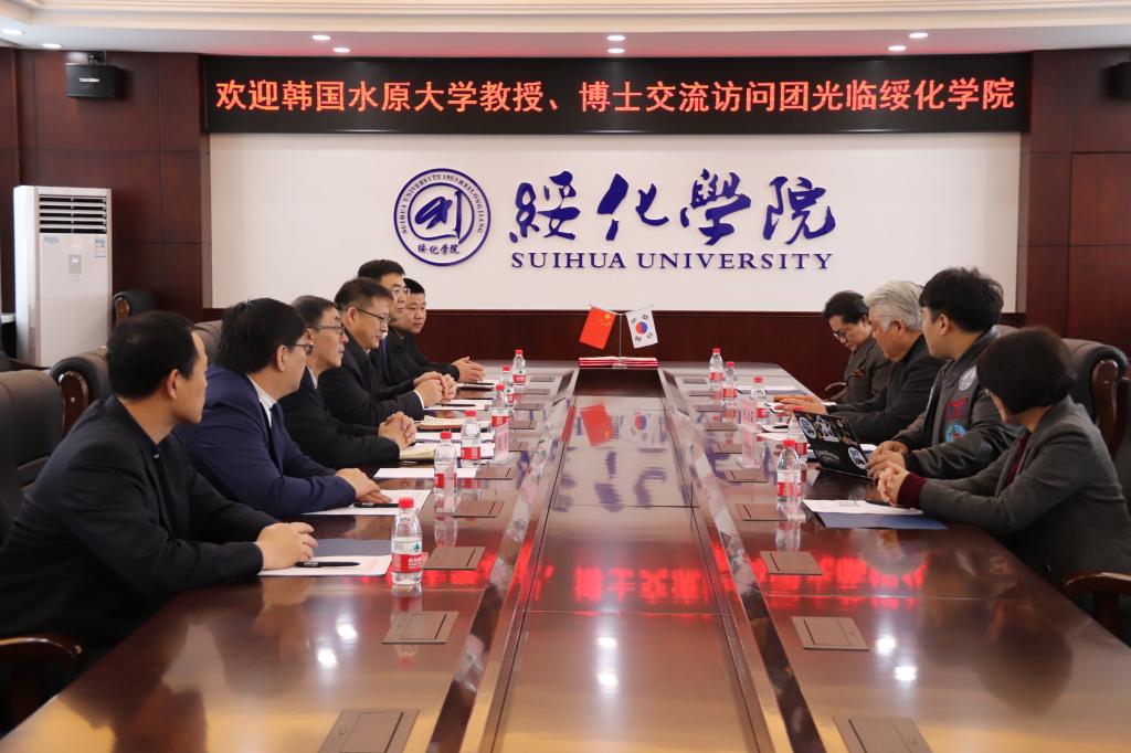双方在机关办公楼310会议室进行会谈。双方各自介绍了学校的发展历史,围绕学校互访、教师培训、留学生教育合作等问题进行了深入交流并达成共识。董国峰与车大荣分别代表我校和韩国水原大学签订了学院合作意向备忘录。
