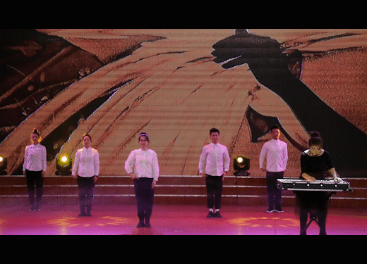 刘芳芳老师表演的创意沙画《我爱你中国》,在灯光的配合下划出一道闪亮的曲线,大屏幕上呈现的画面与同学们的手语相辅相成,描绘出祖国的锦绣山河,展现了同学们对祖国的美好祝愿。