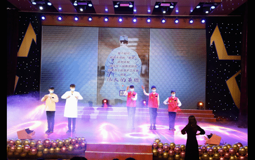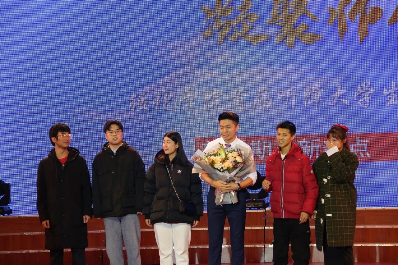 回首四年的时光,忘不掉的是老师的殷殷教导,忘不掉的是老师的默默付出,手语情景剧《我们的四年》,再现了同学们从大一第一节课的自我介绍到最后一节课一起规划未来的场景,最后留下的是老师们坐在一起,看着孩子们曾经的照片,不舍、怀念,祝福涌上心头,浓浓的师生情也让现场观众潸然泪下。2017级在外地实习的听障生早已在后台准备就绪。“老—师—好”蔡立鹏老师回过头,哽咽的声音在喉咙里发不出声响,眼里的泪光反射出四年的点滴时光,郭志涛同学代表同学感谢老师的教导陪伴,老师和同学们相拥而泣,现场爆发出热烈掌声。