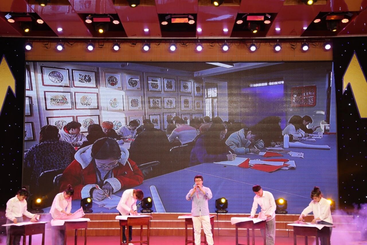 《弘扬中国精神,传承家国情怀》刘卓老师和同学们一起剪纸,剪刀在红色的纸上“运筹帷幄”,刘卓老师还吹起葫芦丝,伴着悠扬的旋律,“弘扬中国精神,传承家国情怀”六幅剪纸作品顷刻间完成。