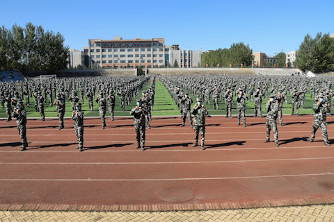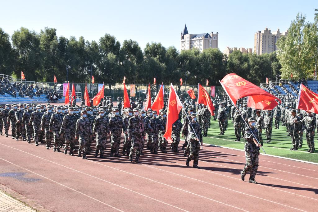 伴随着激昂的《中国人民解放军进行曲》,九个营全体参训学员,在国旗护卫队的引领下,雄姿英发,气势如虹,昂首挺胸,迈着铿锵有力的步伐依次通过主席台接受检阅。庄严的升国旗仪式结束后,校长张凤武和武警绥化支队副政委杜岳泽中校依次检阅各个方阵,“同学们好!”“校长好!”“同学们辛苦了!”“为校争光!”整齐、豪迈的口号声响彻校园。