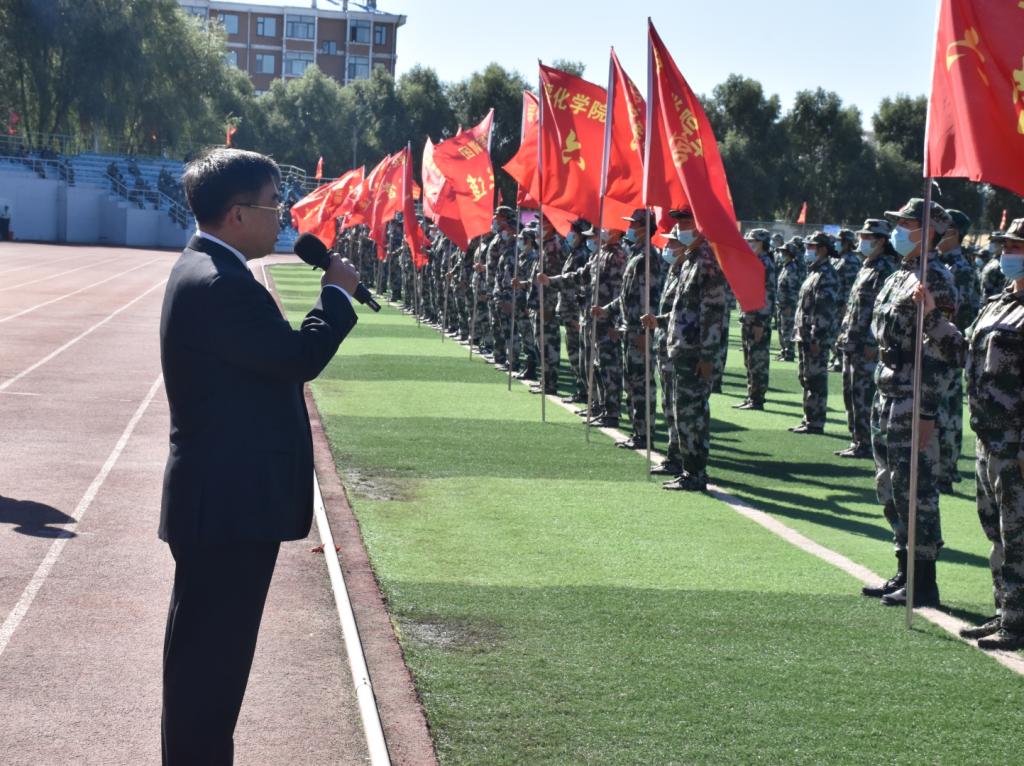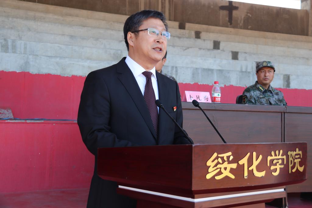 副校长、军训团团长田国忠代表全体师生向加入绥化学院大家庭的新同学们表示热烈的欢迎,对此次承担新生军训任务的武警绥化支队的全体教官和退伍大学生士兵表示衷心的感谢。他希望同学们在未来的岁月里,满怀筑梦豪情、高扬理想风帆,发扬军训精神、保持军训品质,把军训成果转化为激励学习的不竭动力。